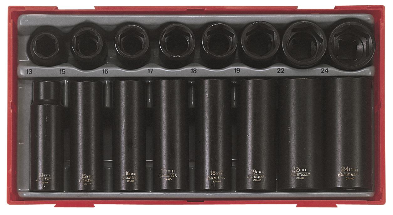 16-elementowy zestaw nasadek maszynowych z chwytem kwadratowym 1/2″ Teng Tools