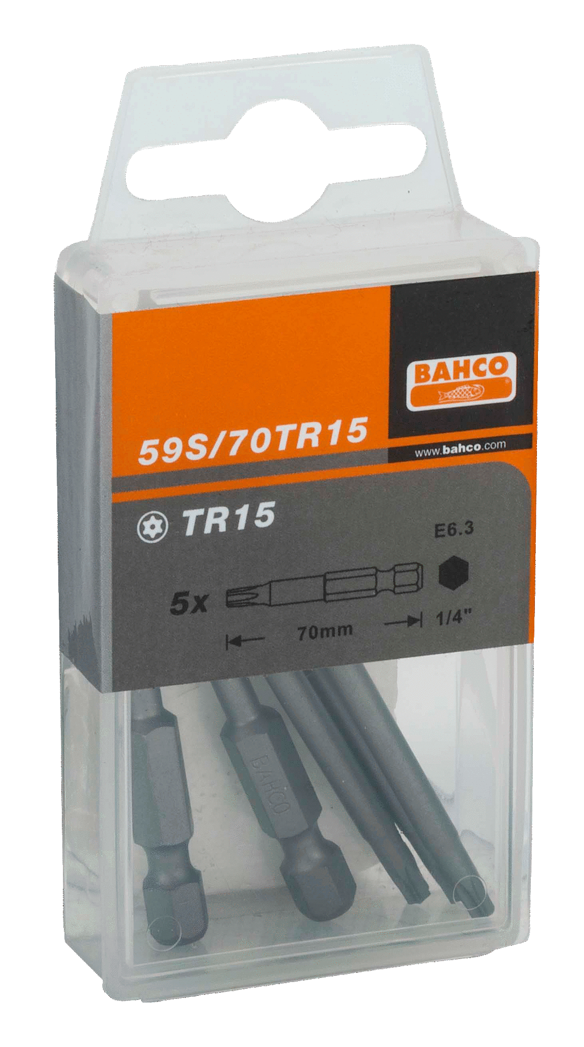Bit 1/4″ do śrub TORX, z otworem centrującym TR15x70 mm, 5 szt. BAHCO