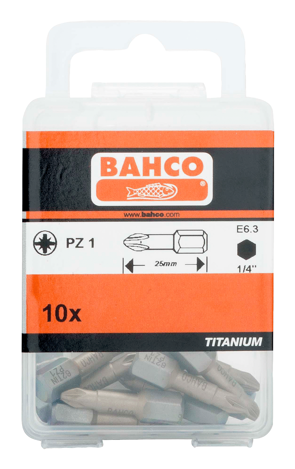 Bit udarowy 1/4″ powlekany TIN PZ1x25mm, 10 szt. BAHCO