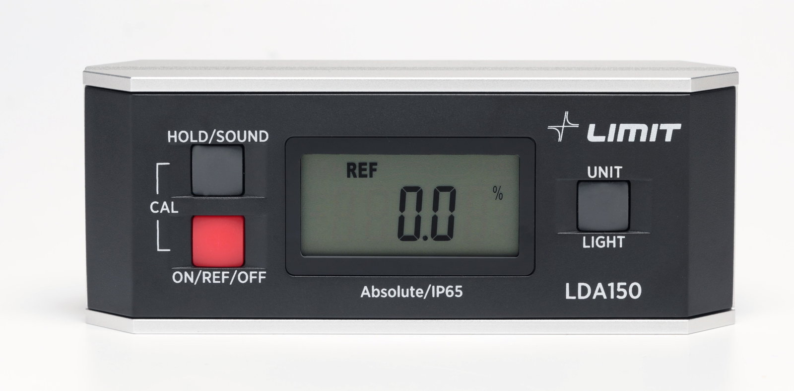 Cyfrowa poziomnica i kątomierz Limit w klasie IP65. Od spodu magnes i rowek pryzmatyczny. „0” może być ustawione w dowolnej pozycji. Funkcja pomiaru bezwzględnego pozwala wybierać czy wyświetlana ma być wartość odchyłki od 0 rzeczywistego, czy też od innego położenia przyjętego za 0. Wynik pomiaru można zatrzymać na wyświetlaczu w żądanej pozycji. Automatyczne wyłączanie. Baterie typu LR03, załączone 2 szt.