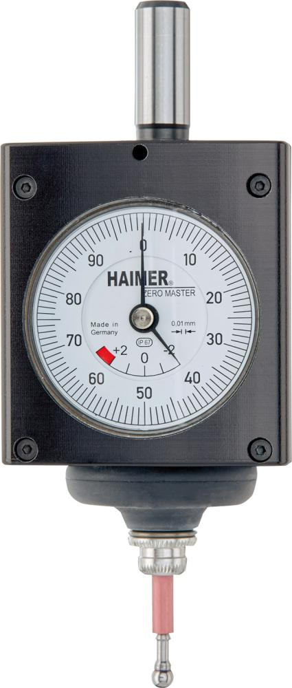 Wykonanie: najmniejszy czujnik zegarowy 3D na świecie, do mocowania na wrzecionie frezarki lub głowicy. Trzpień mocujący ma średnicę 10 mm, dzięki temu może być stosowany na obrabiarkach z SK 30 lub z małymi wrzecionami HSK. Końcówkę pomiarową czujnika wymienia się bez narzędzi. Wszystkie wszystkie uniwersalne czujniki 3D są indywidualnie zmierzone i regulowane podczas montażu, aby zapewnić maksymalną dokładność pomiaru. Czujnik Zero Master można wyposażyć w krótką końcówkę pomiarową (kulka o średnicy 4 mm) i długą końcówkę pomiarową (kulka o średnicy 8 mm). Końcówki pomiarowe pasują do wszystkich czujników pomiarowych 3D marki Haimer.