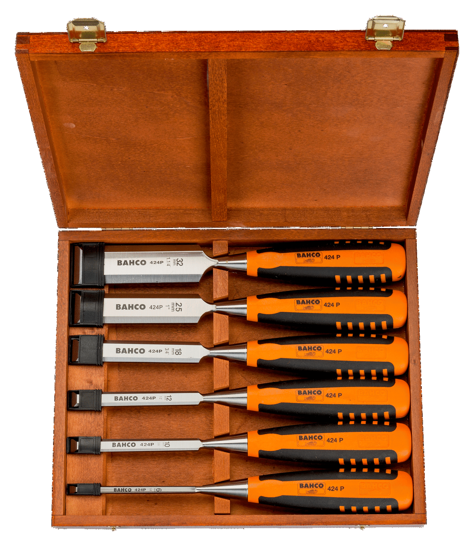 Dłuta profesjonalne z dwuskładnikową rękojeścią, zestaw 6 szt., w pudełku drewnianym BAHCO