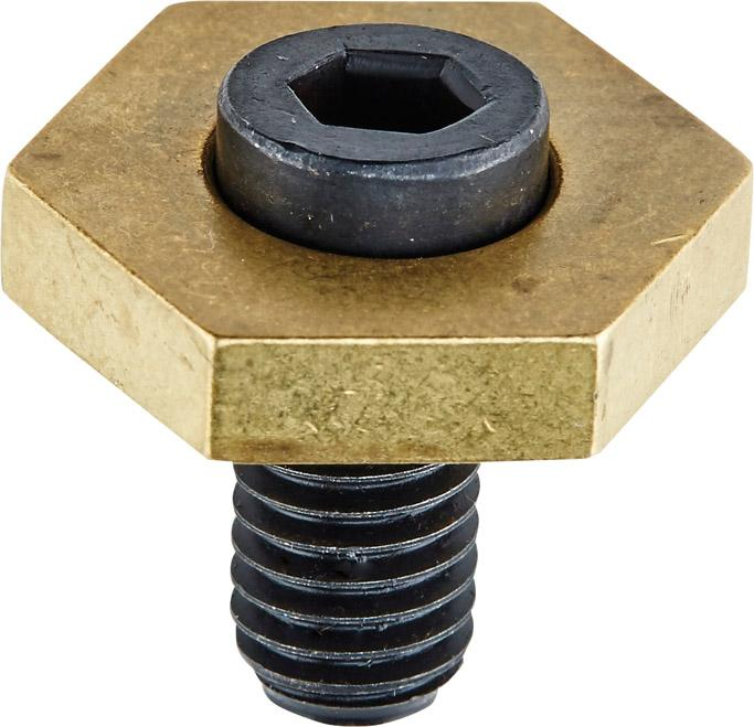 Wykonanie: cechą szczególną tych docisków jest stalowa śruba (o wytrzymałości 10.9) z łbem mimośrodowym. Mimośród powoduje ruch dociskowy o bardzo dużej sile mocowania. Za element zaciskowy służy mosiężna płytka sześciokątna.
