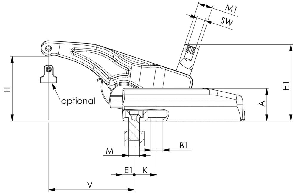 Wykonanie: regulowany bezstopniowo element mocujący ze stali stopowej ulepszonej cieplnie, odkuwany, ocynkowany na czarno. Nieduża wysokość konstrukcyjna. Płynna regulacja wysokości i długości.