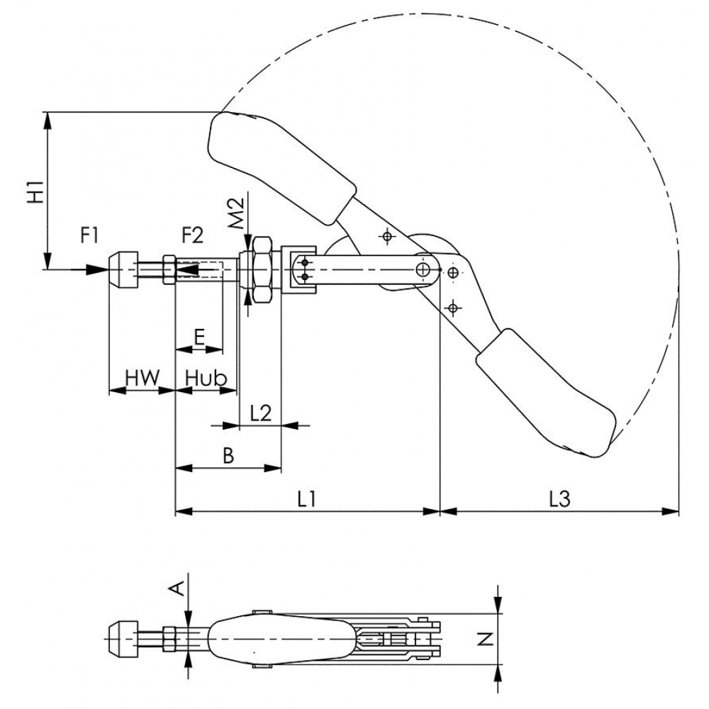 Docisk szybkomocujący z drążkiem przesuwnym 6844 ESD wlk.3 AMF