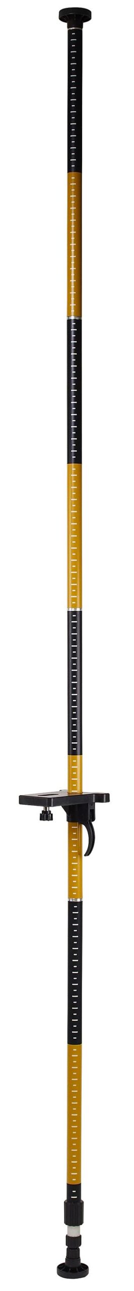 Drążek może stać swobodnie na podłodze z wykorzystaniem podpórek, albo może być rozparty pomiędzy podłogą i sufitem bez podpórek, zajmując mniej miejsca w warunkach ograniczonej przestrzeni. Przydatny do pracy we wnętrzach, zarówno z laserem krzyżowym jak i rotacyjnym, np. Limit 1210. Półkę można zablokować na dowolnej wysokości wzdłuż całego drążka. Drążek składa się z 5 sekcji, skręcanych ze sobą na żądaną długość. Stopka osadzona sprężyście. Łatwy transport i montaż. Wykonany z aluminium. Dostarczany w torbie.