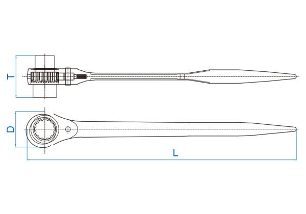 – funkcja grzechotki i nasadki- 32 zęby- przełącznik kierunku pracy grzechotki w kluczu. Wymiary ( mm ) :T – 63 D – 61,5 L – 402. ZALETY klucza :- wykonany z hartowanej stali, z mechanizmem zapadkowym, powierzchnia klucza oksydowana na czarno- sprawdza się w trudnych pracach montażowych lub rozbiórkowych- wyjątkowo odporny na zanieczyszczenia i wpływ warunków zewnętrznych- bardzo długie ramię ułatwia odkręcanie trudnych, zardzewiałych połączeń, a zaostrzona końcówka służy do podważania i rozsuwania demontowanych elementów zastępując pracę małej łyżki lub łomu- przełącznik grzechotki pozwalający na zmianę kierunku pracy bez zdejmowania rękawic- otwór w rękojeści przeznaczony do przypięcia klucza i zabezpieczenie przy pracy na wysokości Karta produktu – 15002730P