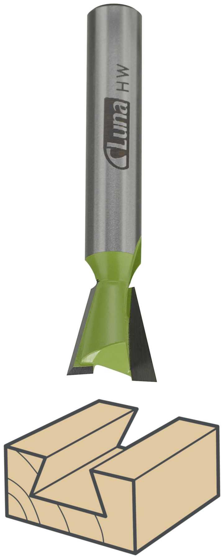 Frezy do wczepów jaskółczych, z ostrzami z węglików spiekanych; seria 21019 bez ostrza wstępnego, seria 21020 z ostrzem wstępnym do mniejszych wyfrezowań i przestrzenią do rozszerzania się kleju.