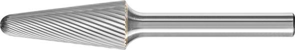Frez trzpieniowy ze stopów twardych DIN 8032/8033, kształt stożkowo-kulisty KEL, uzębienie 5, Rüggeberg