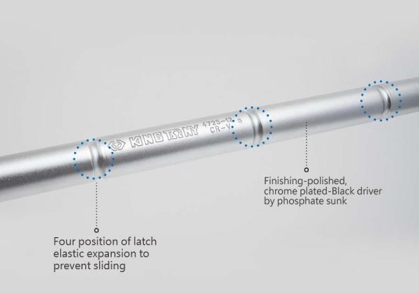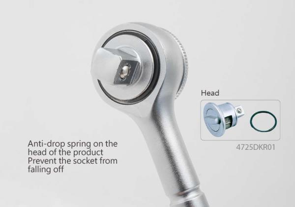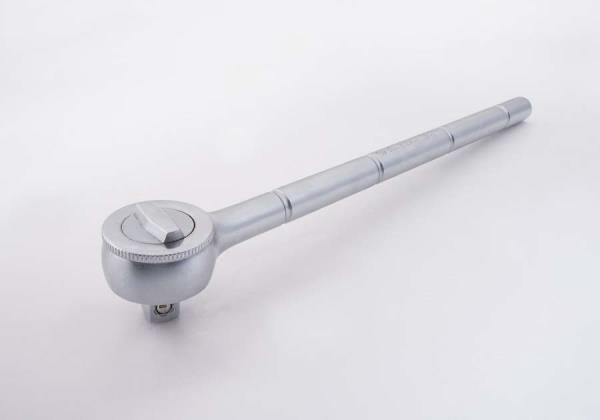 Grzechotka 1/2″ firmy King Tony. Mechanizm grzechotki wyposażony jest w 45 zębów, co daje jeden przeskok co każde 8 stopni obrotu. Grzechotka posiada obrotowy przełącznik kierunku, całkowita długość 250 mm, Na rękojeści grzechotki znajdują się 4 specjalne rowki służące do użycia przedłużki 4121. Grzechotka chromowana Karta produktu – 4725-12BR