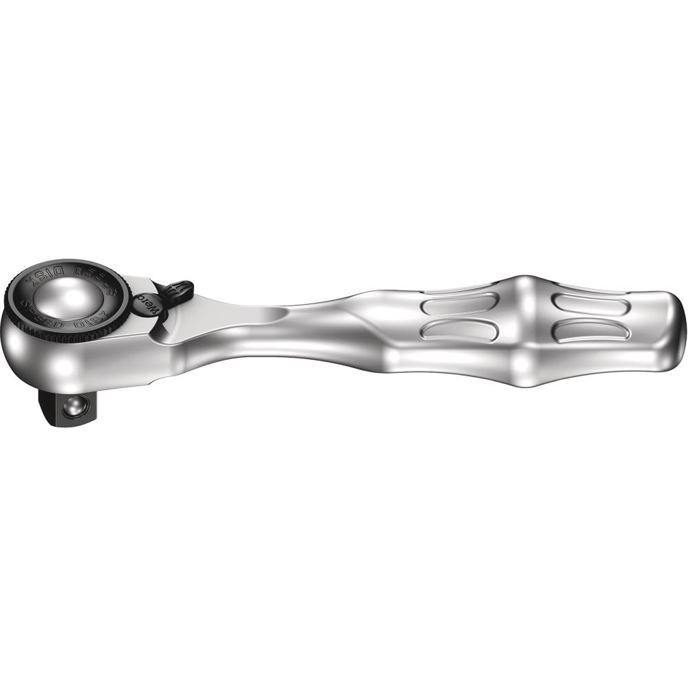 Wykonanie: grzechotka metalowa ze stali chromowo-molibdenowej, kuta. Z drobnym uzębieniem, z bardzo małym kątem powrotu zapadki. Bardzo smukła główka zapewniająca dobry dostęp do ograniczonych przestrzeni, ustalacz kulkowy zapewniający pewne osadzenie końcówek klucza nasadowego. Mały ciężar dla zwiększenia mobilności, duża wytrzymałość.