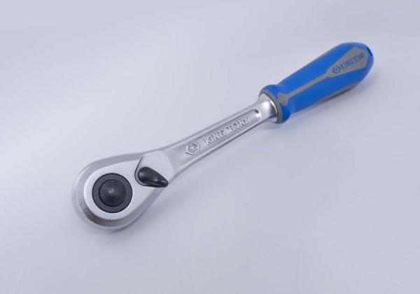GRZECHOTKA Z PRZYCISKIEM 1/2″ 90 ZĘBÓW 250mm CHROM, UCHWYT GUMOWY King Tony
