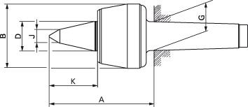 Wykonanie: korpus i wierzchołek odkuwane matrycowo, hartowane i szlifowane. Wierzchołek można wielokrotnie szlifować, łożyskowany na chwycie, z kątem wierzchołkowym 60°. Specjalna uszczelka wargowa chroni precyzyjne łożysko toczne przed zabrudzeniami i chłodziwem. Chwyt szlifowany z otworem do łatwego demontażu.