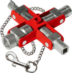 W kształcie krzyża z łańcuszkiem i karabińczykiem. Z czworokątnym trzpieniem 6 mm, stopniowanym czworokątnym trzpieniem 7–8 mm i 9-10 mm, trójkątnym trzpieniem 7 mm, z stopniowanym trójkątnym trzpieniem 8–9 mm i 10–11 mm, podwójna bródka 3–5 mm, półksiężyc 6 mm i czworokątnym kluczem do zaworów odpowietrzających grzejniki 5 mm.