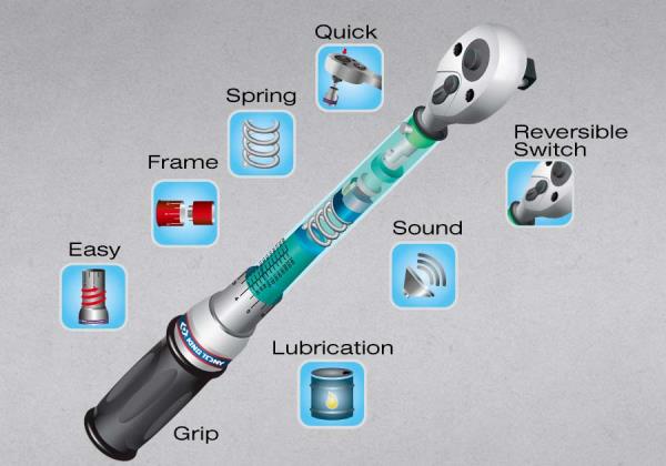 Klucz dynamometryczny 1/2″ King Tony. Grzechotka klucza z przyciskiem pozwala na łatwe zdejmowanie nasadek. Gumowa, ergonomiczna rączka, czytelna skala. Zakres momentu obrotowego od 40 do 200 Nm z dokładnością 1 Nm. Długość klucza 521 mm. Ilość zębów. Kierunek prawo/lewo. Karta produktu – 34462-1DG