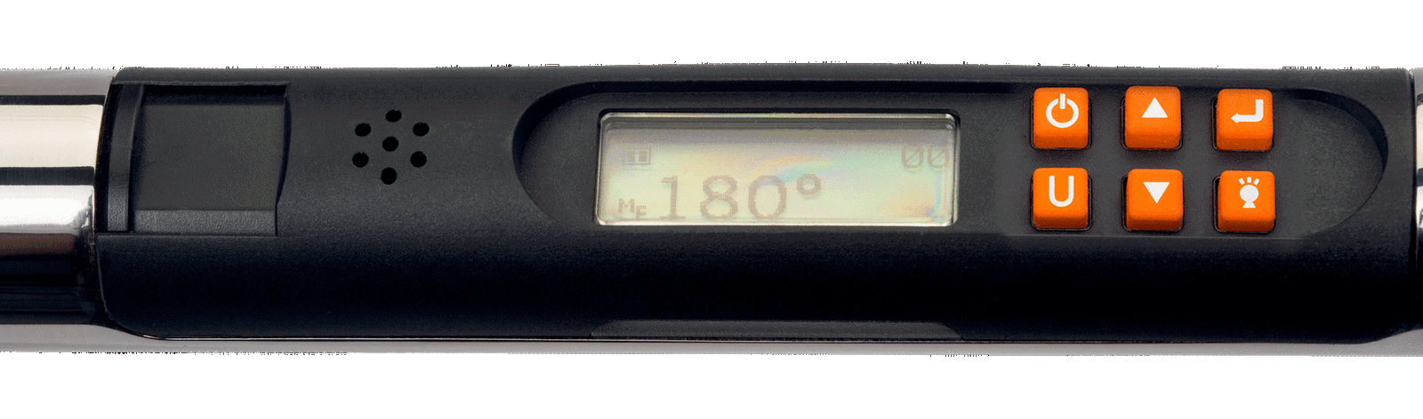 - Jednostki momentu w Nm, kg.cm, dNm, ft.lb, lb.in (cNm i in.oz w zależności od zakresu) oraz kątowe w stopniach