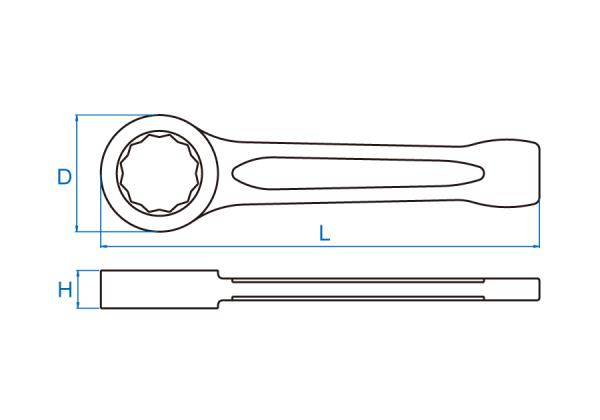 Wykonany z wysokiej jakości stali, powierzchnia fosforowana. Narzędzie zgodne z normą DIN 7444. Wymiary klucza w mm :- L – 275- D – 95- H – 26 Karta produktu – 10B0-60