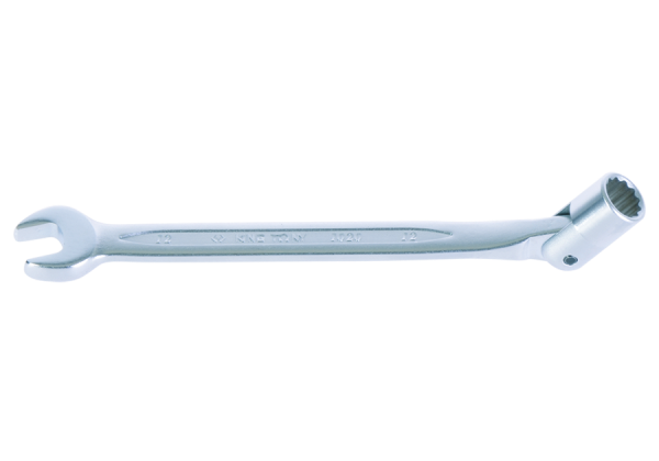 Klucz płasko-nasadowy przegubowy 8 mm. Całkowita długość klucza 170 mm. Cienki klucz z obracającą się o 180 stopni końcówką z kluczem nasadowym. Karta produktu – 1020-08