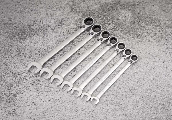 Klucz płasko-oczkowy z grzechotką dwukierunkową King Tony. Całkowita długość klucza 150 mm. Rozmiar klucza 9 mm. Grzechotka dwukierunkowa umożliwia zmianę kierunku pracy klucza bez zdejmowania go ze śruby. Narzędzie wykonane z wysokiej jakości stali chromowo-wanadowej, polerowane i chromowane. Karta produktu – 373209M
