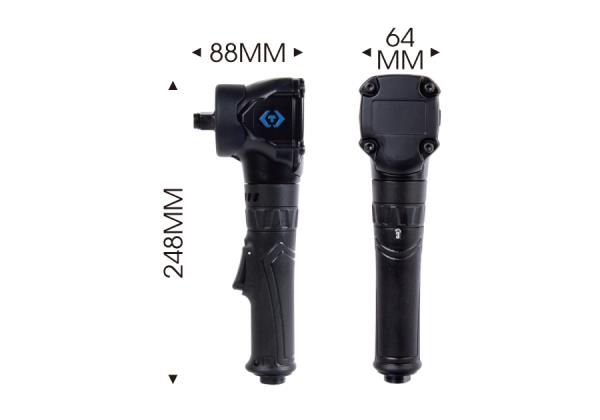 Przydatny do pracy w ograniczonej przestrzeni. Ergonomiczny uchwyt Lekki: 1.4kgDane techniczne:- trzpień: 1/2″- śruba: M14- maksymalny moment obrotowy: 407 Nm- obroty: 6500 RPM- ciśnienie pracy: 90 PSI (6,2 bar ) – pobór powietrza: 119 l/min ( 4,2 CFM) – długość klucza: 248 mm – średnica węża: 3/8″- średnica wlotu: 1/4″ Karta produktu – 33491-030