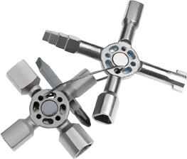Wykonanie: ciśnieniowy odlew cynkowy. Złożony z dwóch krzyżów, które można połączyć magnesem. Podwójne ostrze płaskie 1 x 7 mm/krzyżowy PH 2 na lince ze stali nierdzewnej. Ze stopniowanym czworokątem wewnętrznym 6–7–8–9 mm, stopniowanymi zewnętrznymi czworokątami 6–7 mm; 8–9 mm i 10–11 mm, stopniowanymi zewnętrznymi trójkątami 7–8 mm; 9–10 mm i 11–12 mm, podwójną bródką 3–5 mm, półksiężycem 6 mm oraz z czworokątnym kluczem do zaworów grzejnikowych 5 mm.