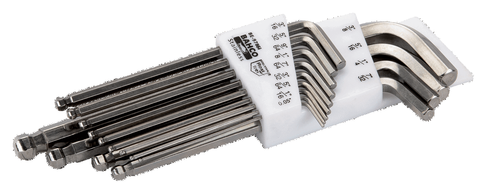 - Zestaw długich kluczy imbusowych, nierdzewnych, calowych 13 szt.