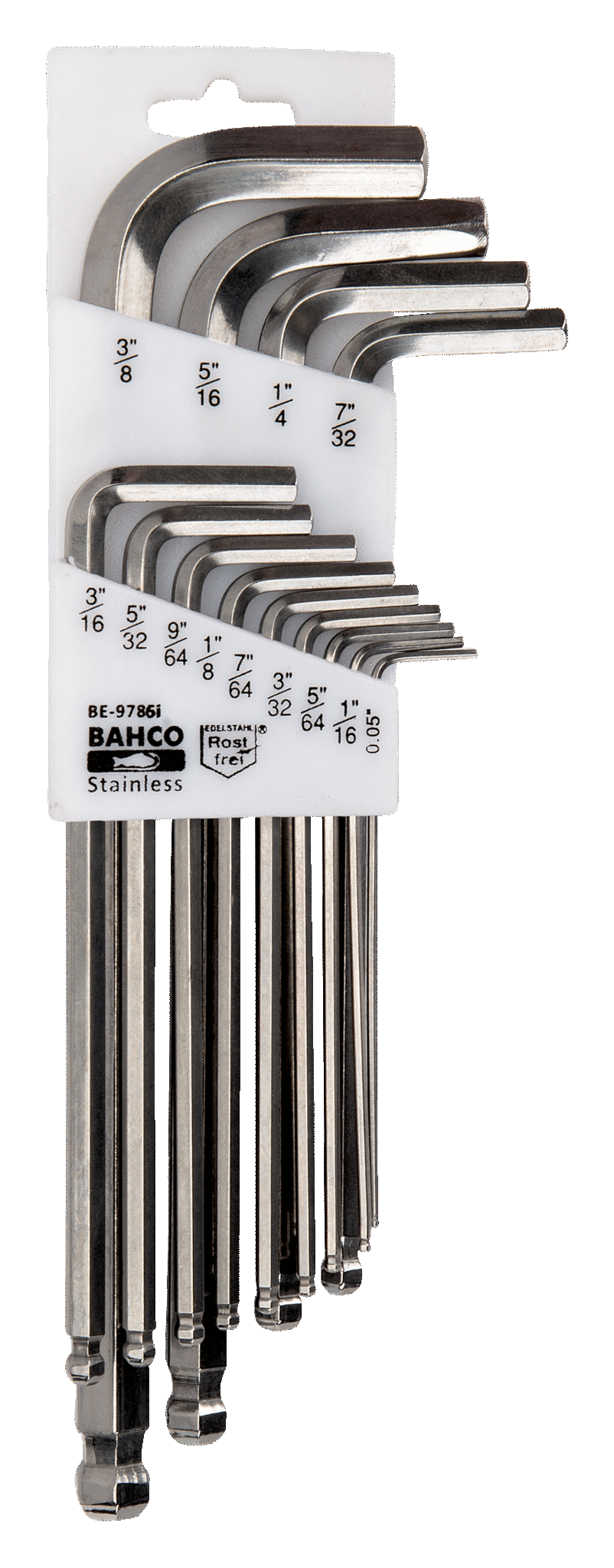 Klucze imbusowe z kulką nierdzewne calowe 13 szt. w plastikowym klipsie 0.05-3/8 in BAHCO