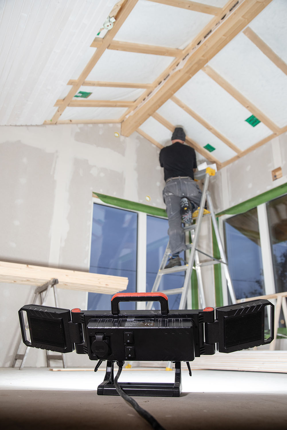 Silna lampa wykorzystująca technologię SMD. Posiada trzy oddzielne źródła światła, które można ustawiać pod różnym kątem względem siebie, aby uzyskać jak najlepszy efekt oświetlenia. Możliwość używania samego głównego panelu środkowego albo samych paneli bocznych. Panele boczne można złożyć, a podstawę przechylić do góry, dzięki czemu lampa staje się mała i poręczna w transporcie. Udaroodporność IK08. Wyposażona z tyłu w dodatkowe gniazdko sieciowe.