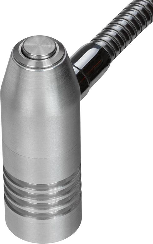 Wykonanie: Główka lampy z aluminium z satynowaną szybką akrylową przed chipem LED. Równomierne oświetlenie bez odbijania światła, olśnienia i migania. Włącznik i wyłącznik bezpośrednio przy stopie lampy. Z podstawą z magnesem do bezpośredniego montażu na maszynie. Zabezpieczona przed pyłem i wodą rozpryskową aż do złącza sieciowego.