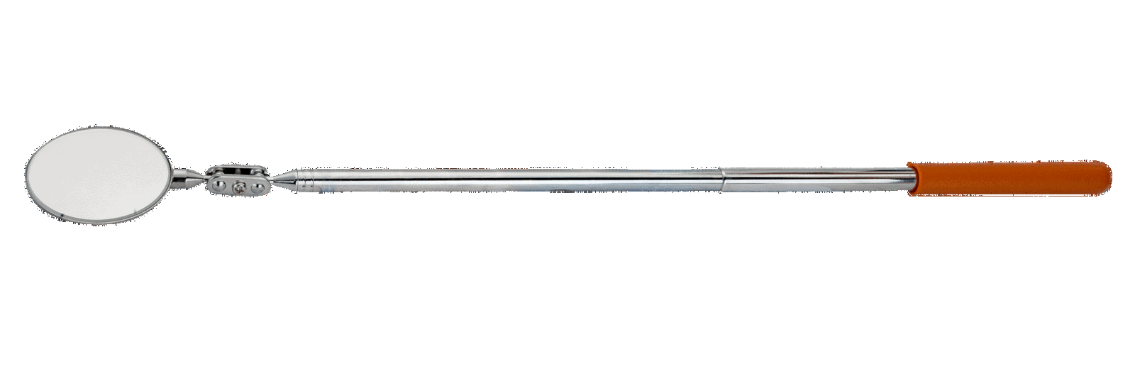 - Obudowa lusterka oraz trzpień ze stali nierdzewnej, rękojeść z pomarańczowego tworzywa