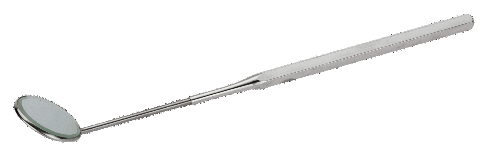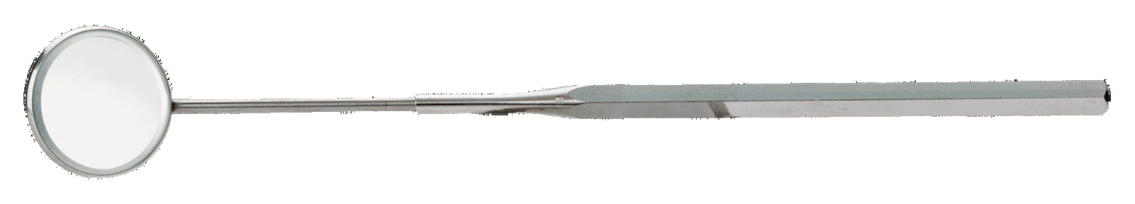 • Solidna, stalowa rękojeść ze stalową obudową lusterka; w niebieskim pokrowcu