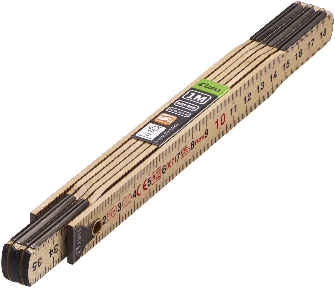 Klasyczny przymiar składany. Wykonany z cienkich, giętkich elementów z jasnego drewna brzozowego posiadającego certyfikat FSC. Bardzo wyraźny nadruk z podziałką w kolorze czarnym i czerwonym (liczby podzielne przez 10) ułatwia odczyt pomiaru. Precyzyjnie wykonane metalowe elementy zapewniają sprawne działanie i prawidłowe użytkowanie. Metalowy otwór umożliwia zamontowanie zabezpieczenia chroniącego narzędzie przed upadkiem.