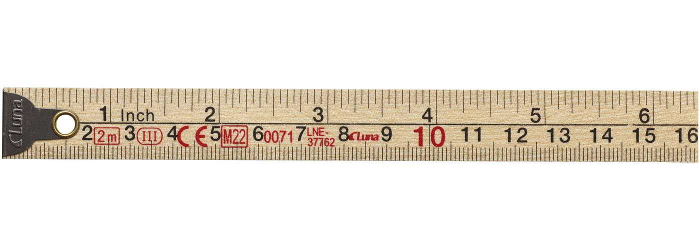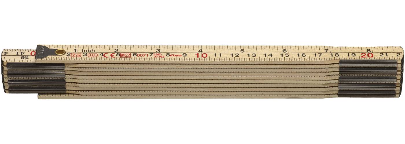 Klasyczny przymiar składany w skandynawskim stylu. Wykonany z cienkich, giętkich elementów z jasnego drewna brzozowego posiadającego certyfikat FSC. Bardzo wyraźny nadruk z podziałką w kolorze czarnym i czerwonym (liczby podzielne przez 10) ułatwia odczyt pomiaru. Precyzyjnie wykonane metalowe elementy zapewniają sprawne działanie i prawidłowe użytkowanie. Metalowy otwór umożliwia zamontowanie zabezpieczenia chroniącego narzędzie przed upadkiem.