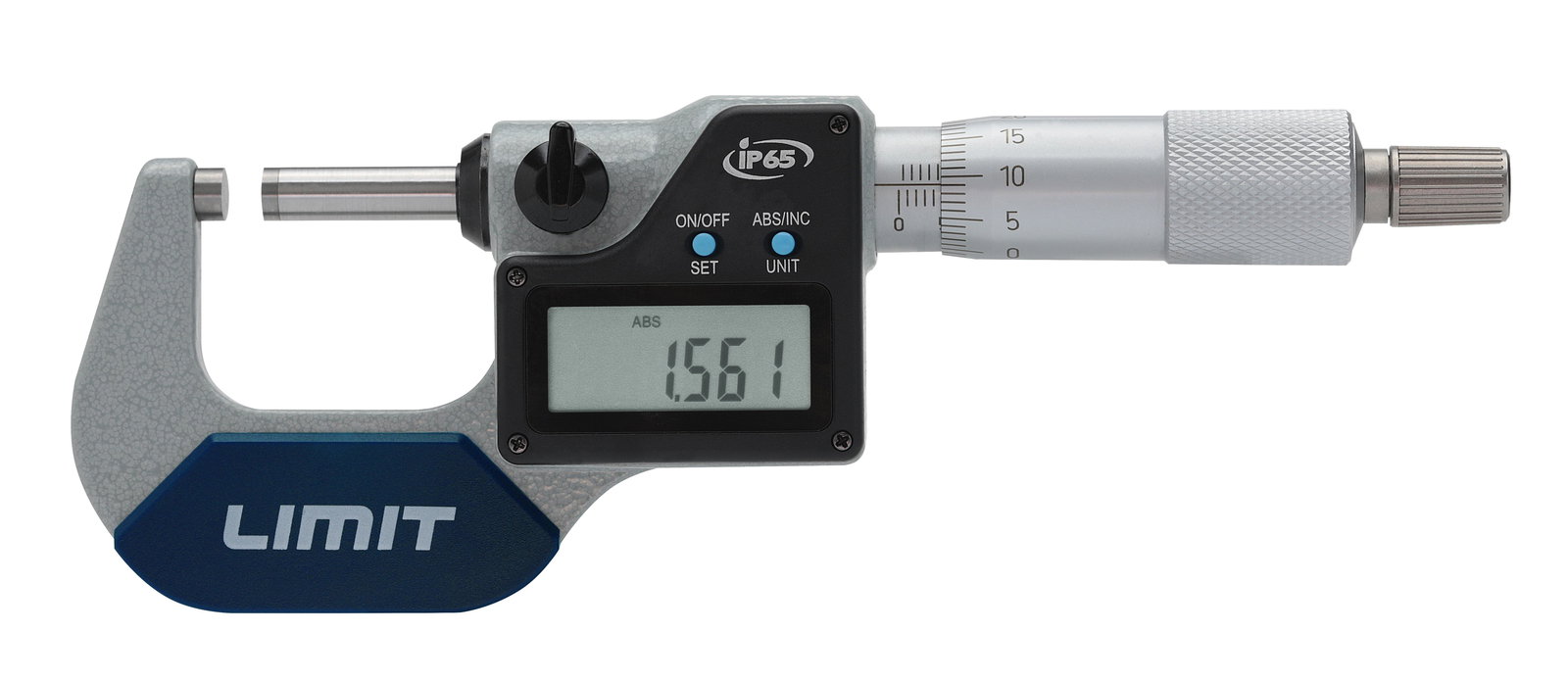 Cyfrowy mikrometr z kabłąkiem odkuwanym, klasa IP65, zapewniający szybki odczyt wyniku pomiaru. Pyło- i wodoodporny. Hartowane wrzeciono z dokładnie docieranymi powierzchniami pomiarowymi z węglików spiekanych. Wyświetlacz LCD z cyframi o wysokości 7.5 mm. Przyciski do włączania/wyłączania i do innych funkcji. Z tuleją ze sprzęgłem zapadkowym i dźwigienką ustalającą. Wykonanie zgodne z DIN 863. Bateria typu SR44, w załączeniu.
