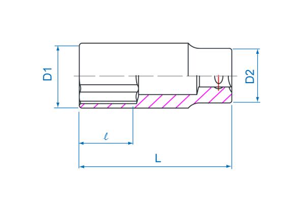 Nasadka długa 12-kątna 3/8″ King Tony. Nasadka w rozmiarze 17 mm, całkowita długość 63 mm. Nasadka wykonana ze stali chromowo-wanadowej, polerowana i chromowana. Wymiary ( mm ) : D1 – 23,8 D2 – 20,0 l – 18,0 L – 63 Karta produktu – 323017M
