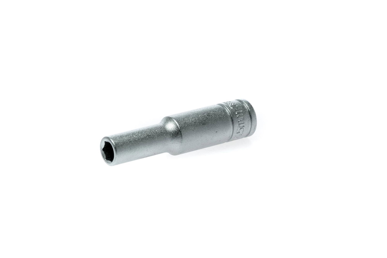 Długie, metryczne nasadki sześciokątne. Ze stali chromowo-wanadowej. Chromowane na mat. Długość 49.5 mm. Zgodne z normą DIN 3124/ISO 2725.