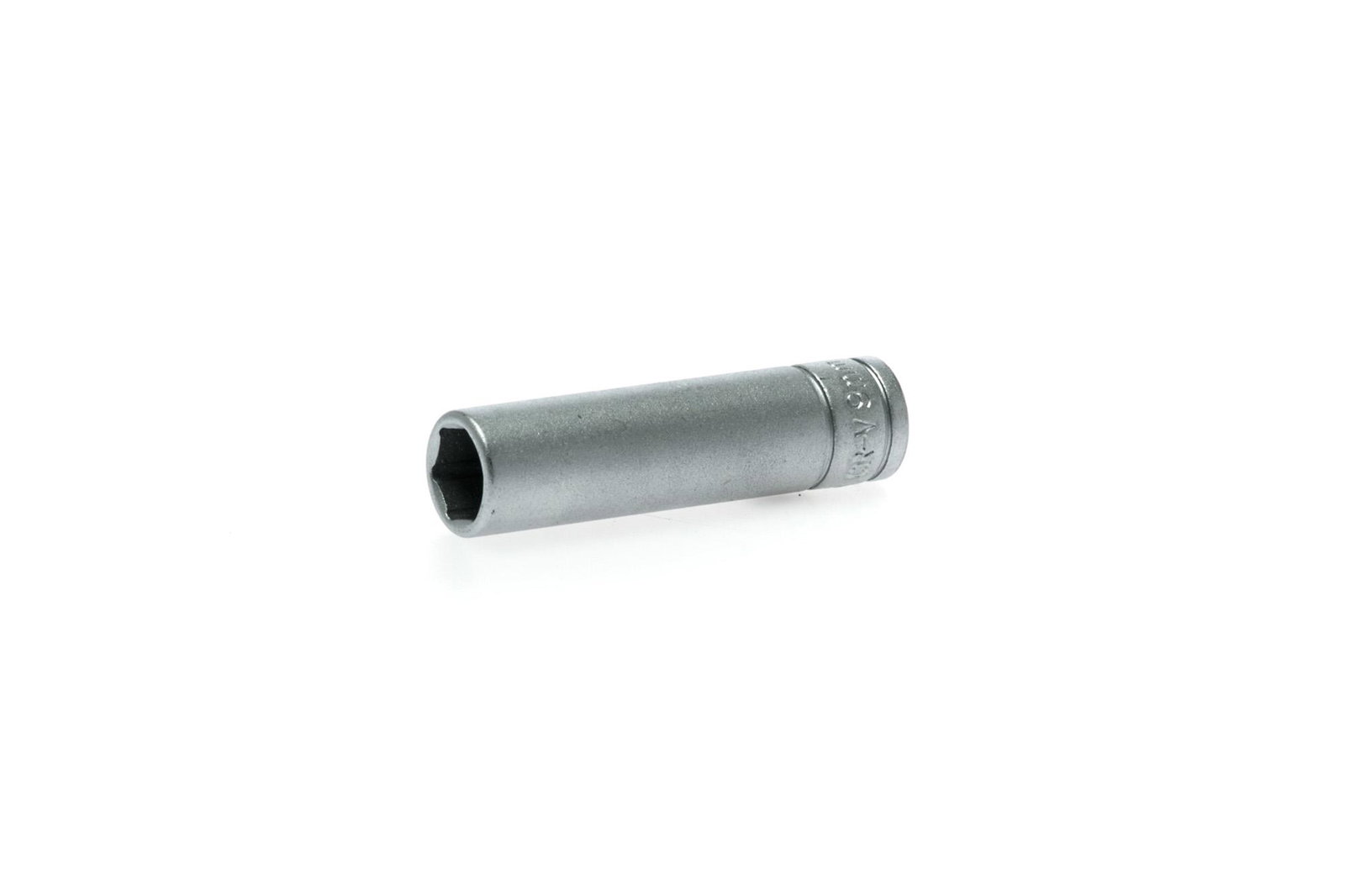 Długie, metryczne nasadki sześciokątne. Ze stali chromowo-wanadowej. Chromowane na mat. Długość 49.5 mm. Zgodne z normą DIN 3124/ISO 2725.