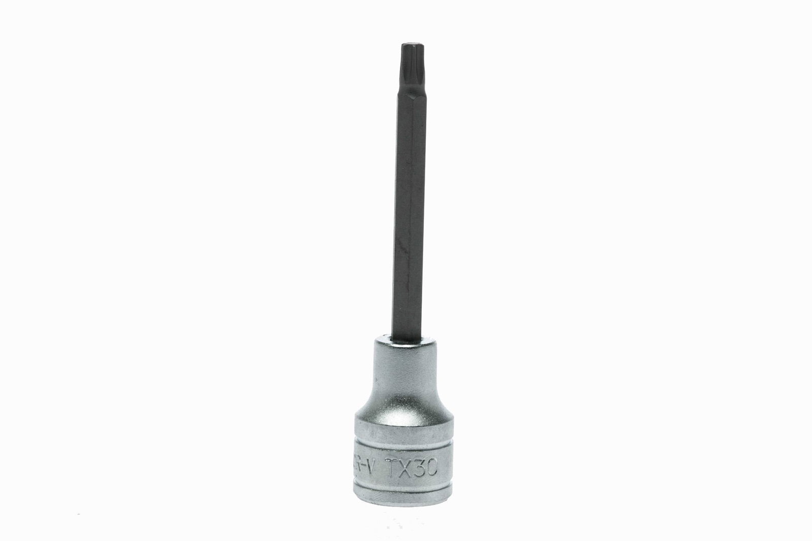 Długie nasadki trzpieniowe do gniazd typu Torx. Do pracy ręcznej. Nacięcie zapewnia minimalne straty przy przenoszeniu momentu obrotowego. Ze stali chromowo-wanadowej. Chromowane na mat.