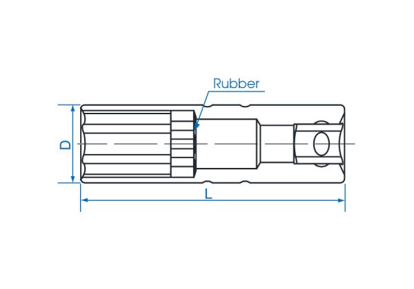 Wnętrze tulei – guma. Rozmiar 14 mm. Wymiary: D – 18,5 mm, L – 63 mm Karta produktu – 36B514