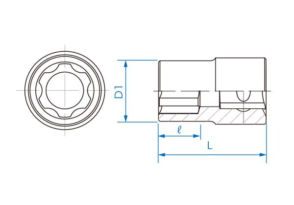 Nasadka 1/2″ RIBE M12S 6-kątna do wymiany i usuwania śrub głowicy silnika i śruby centralnej koła zamachowego w autach Nissan. Wymiary: D1-22 mm, l-14 mm, L-38 mm Karta produktu – 9aw4901