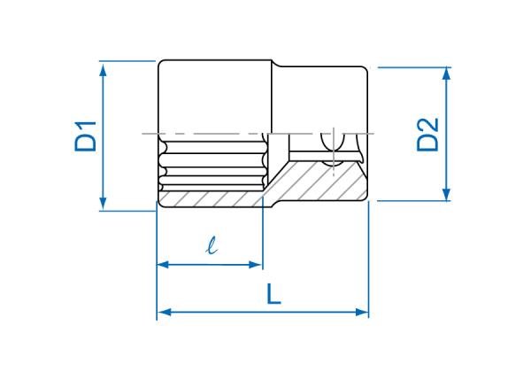 Nasadka krótka 1/4″, 5/32″ x 24 mm, 12-kąt. Wymiary ( mm ) : D1 – 6,8 D2 – 11,8 l – 4 L – 24 Karta produktu – 233005S