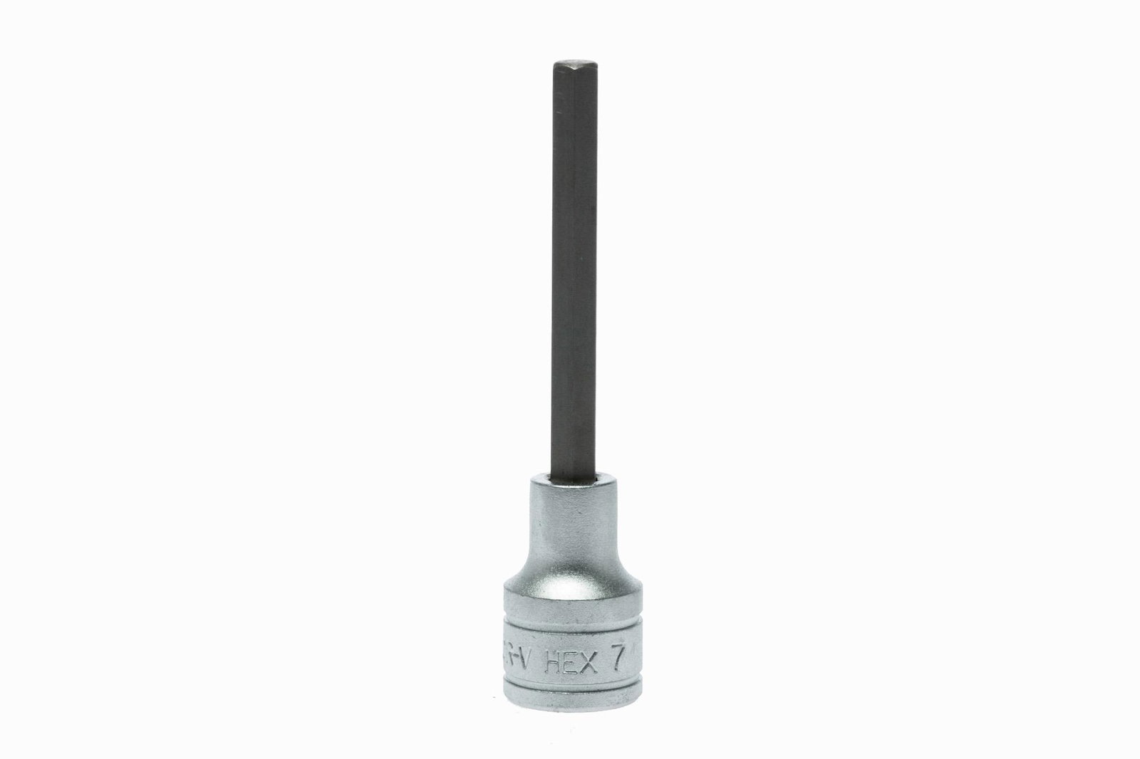 Długie nasadki trzpieniowe do gniazd sześciokątnych (imbus). Do pracy ręcznej. Ze stali chromowo-wanadowej. Chromowane na mat.
