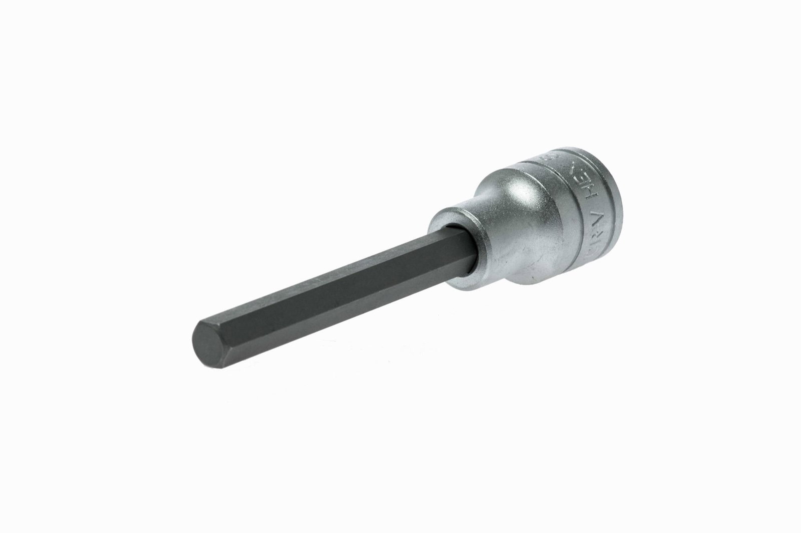Długie nasadki trzpieniowe do gniazd sześciokątnych (imbus). Do pracy ręcznej. Ze stali chromowo-wanadowej. Chromowane na mat.