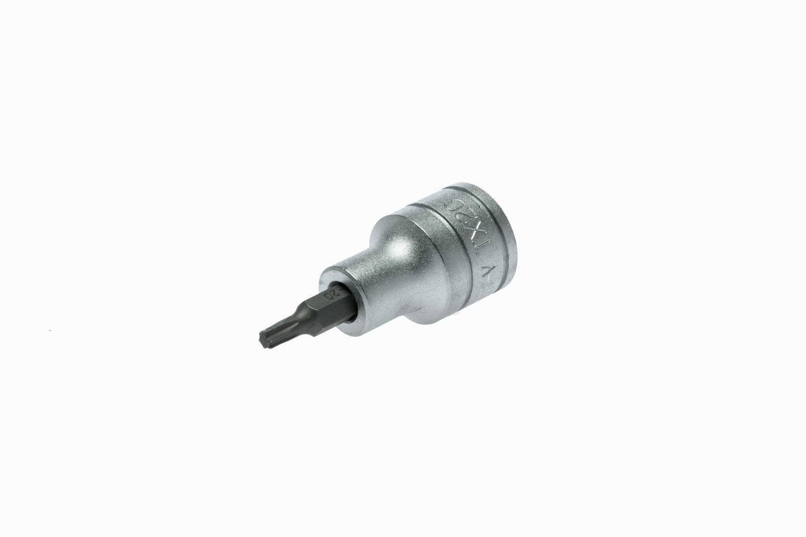 Ze stali chromowo-wanadowej. Do gniazd typu TX. Nacięcie zapewnia minimalne straty przy przenoszeniu momentu obrotowego. Do pracy ręcznej. Chromowany na mat.