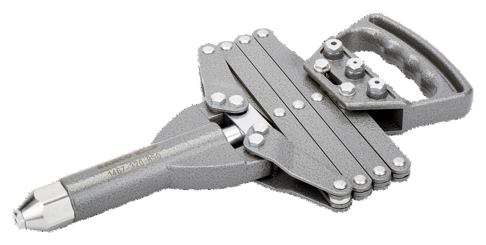 - Nitownica rozkładana z końcówkami na nity Ø 3.80 – 4.00 mm, Ø 4.80 – 5 mm and Ø 6.00 – 6.50 mm