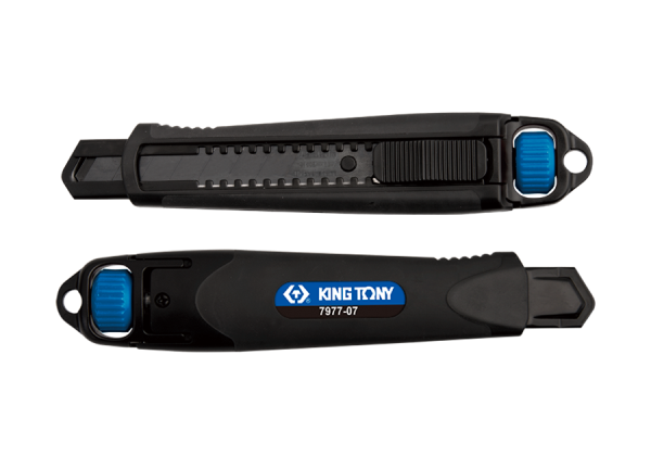 Technologia hartowania laserowego zwiększa twardość ostrza. Blokada koła do 60 kg momentu obrotowego. Materiał: SK4 (HRC ? 65) Ostrze z czarną powłoką, grubość 0,7 mm i szerokość 18 mm. Karta produktu – 7977-07