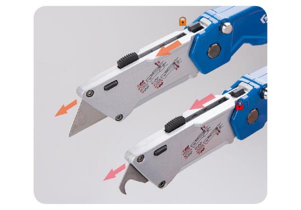 Konstrukcja z dwoma ostrzami (2 w 1) . Blokada ostrza – tylko 1 ostrze jest wysuwane naraz. Przycisk zwalniający ostrze umożliwia szybką wymianę ostrza w kilka sekund Karta produktu – 7945-07