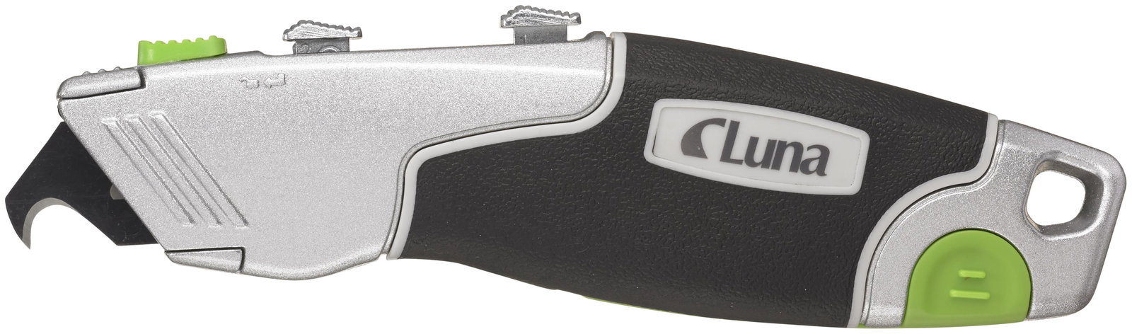 Nóż uniwersalny dwuostrzowy. Obudowa ze stopu cynku z miękkimi ergonomicznymi detalami z gumy, zwiększającymi wygodę użytkowania. Dwa suwaki: do ostrza hakowego i do ostrza zwykłego, prostego. W rękojeści magazynek ostrzy. Dostarczany z ostrzem SK2H. Otwór do dołączenia zabezpieczenia narzędzia.