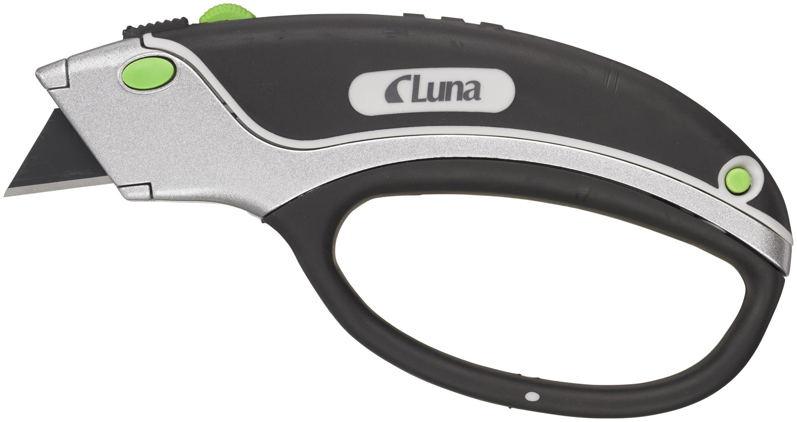 Nóż uniwersalny z osłoną ręki. Obudowa ze stopu aluminium, z miękkimi ergonomicznymi detalami z gumy, zwiększającymi wygodę i bezpieczeństwo użytkowania. W rękojeści magazynek ostrzy. Dostarczany z ostrzem SK2H.