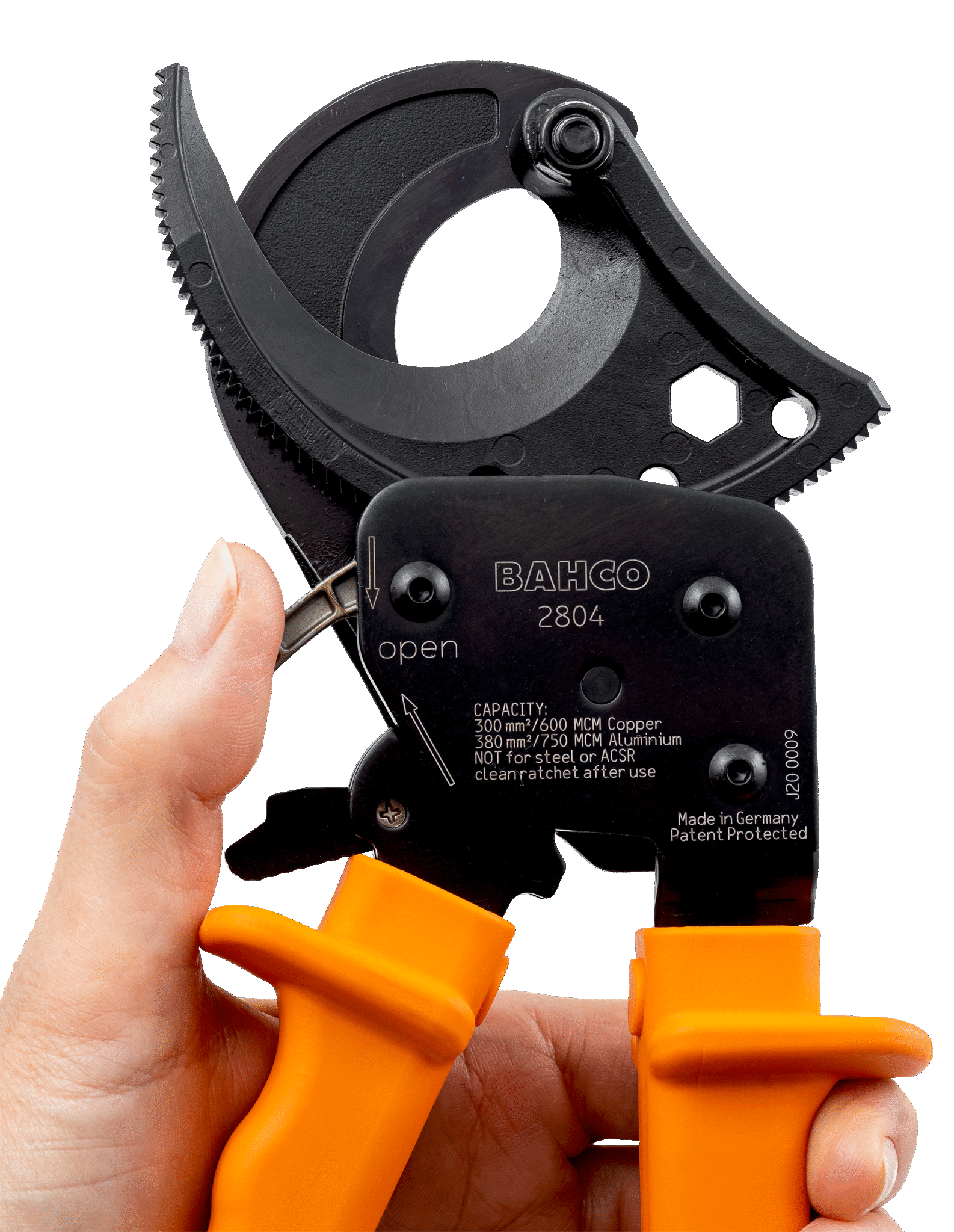 - Nożyce do cięcia kabli z optymalną siłą dzięki mechnizmowi stopniowemu